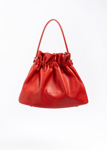 Confeccionado en piel de cordero ultra suave, The Brook Bag ofrece un tacto lujoso realzado por impecables detalles artesanales. Su apertura superior fruncida, asegurada con un cierre de imán discreto, combina suavidad y estructura en una silueta refinada.